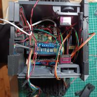 My WALL-E robot is able to move on flat ground, it can raise/lower its arms as well as move its head from left to right and up and down. He is also able to express himself through pre-recorded audios and he has a small screen to show his battery level. Finally, a camera already present will allow him in the future to move independently with the help of 2 ultrasonic sensors as well as a powerful LED which will light up when the ambient light is too low. To control all this, WALL-E has a web interface that can be accessed to interact with it manually.